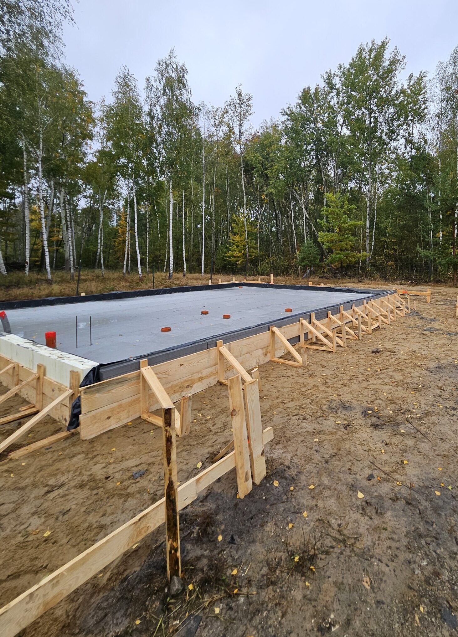 Teren inwestora o powierzchni ok. 1000 m² został przygotowany pod wykonanie płyty fundamentowej. W ramach prac ziemnych usunięto wierzchnią warstwę gruntu oraz wykonano wykop pod wymianę gruntu, poszerzony o ok. 1 metr i pogłębiony o dodatkowe 30 cm.