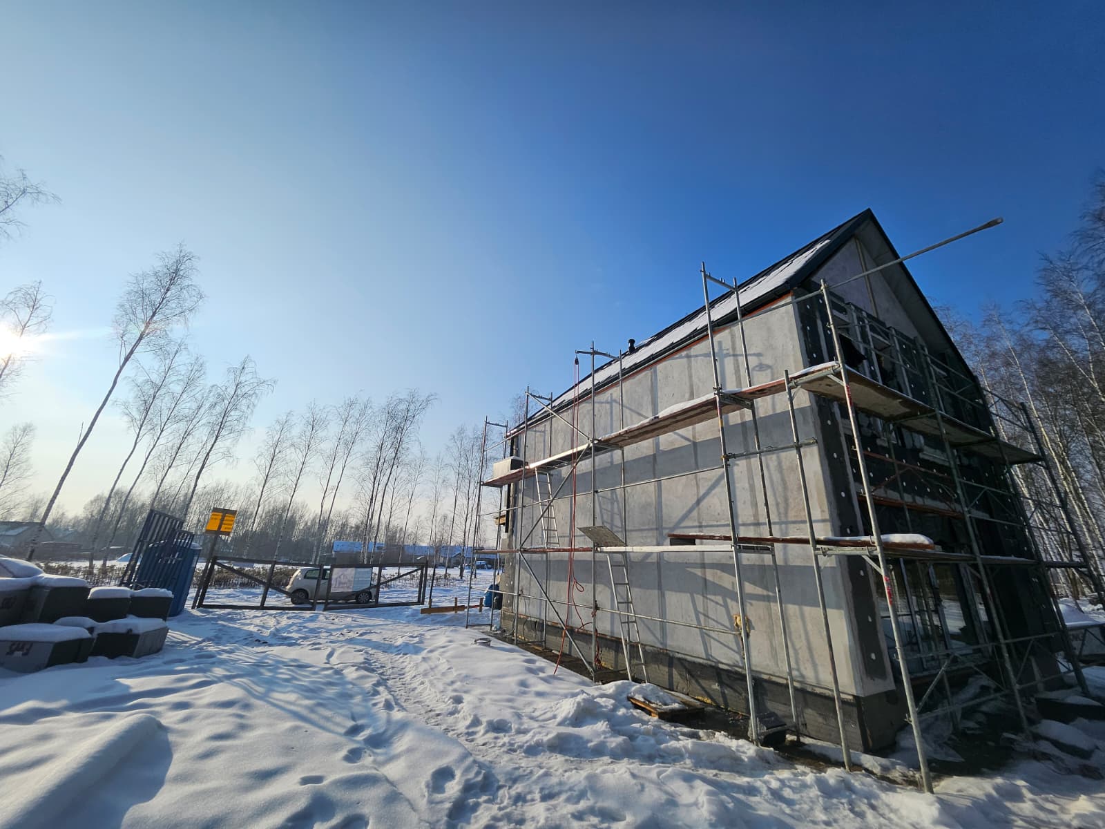 Na budynku wykonano prace elewacyjne zgodnie z projektem architektonicznym. Zrealizowano warstwy elewacyjne wraz z izolacją termiczną oraz tynkiem zewnętrznym.