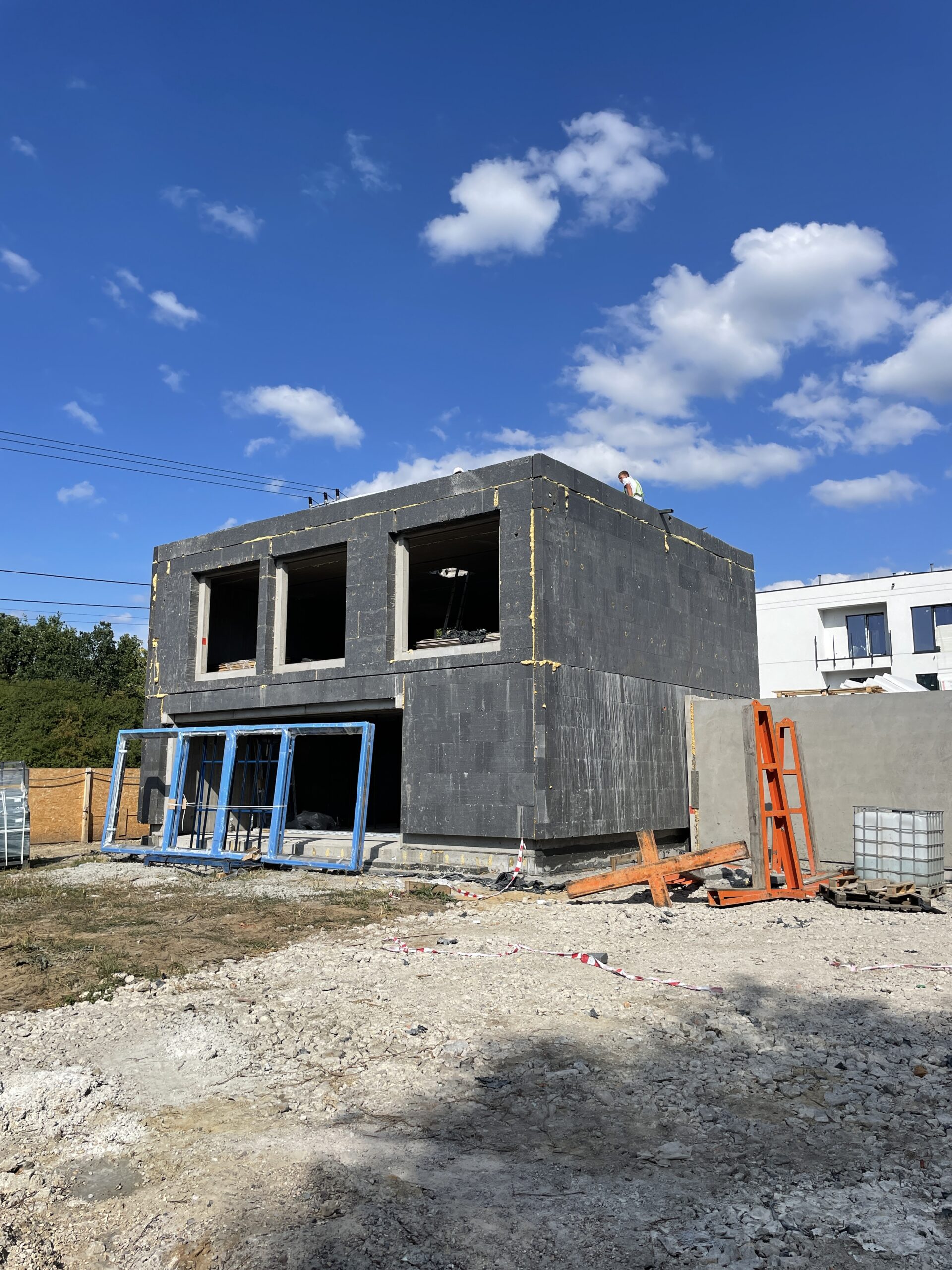 Na warszawskiej Białołęce zrealizowaliśmy dom pokazowy według projektu MASTER 160. Wzbogaciliśmy wersję podstawową o podwójny garaż oraz elewację wykończoną klinkierem, co nadało mu elegancki i reprezentacyjny charakter. W tym miejscu mieści się dziś biuro Prenovi (ul. Inna 2, Warszawa), gdzie spotykamy się z klientami i organizujemy dni otwarte.